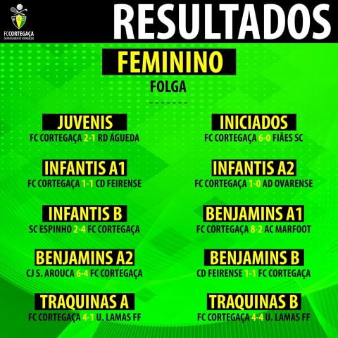 Estes foram os resultados das equipas de formação do Futebol Clube de Cortegaça no último fim de semana