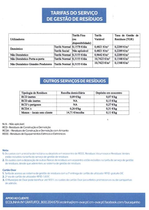 As bonificações foram atribuídas tendo em conta os resultados de 2023. Para clientes com recolha porta-a-porta foram considerados elegíveis os que utilizaram o contentor pelo menos uma vez por mês. Para os clientes com “Cartão Ovar” ou acesso aos contentores de resíduos alimentares foram considerados elegíveis os que tiveram pelo menos uma abertura mensal de tampa dos equipamentos de biorresíduos. Foram ainda considerados os participantes na compostagem doméstica com o uso correto do compostor, validado por fiscalização municipal.