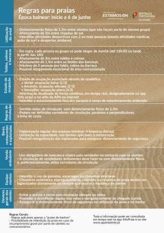 Conjunto de regras para as praias, resultantes do Conselho de Ministros de 15 de maio de 2020: