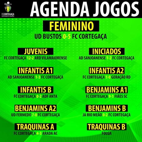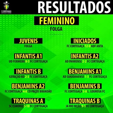 Na semana em que os Juvenis se tornaram Campeões Distritais, estes foram os resultados completos do Futebol Clube de Cortegaça
