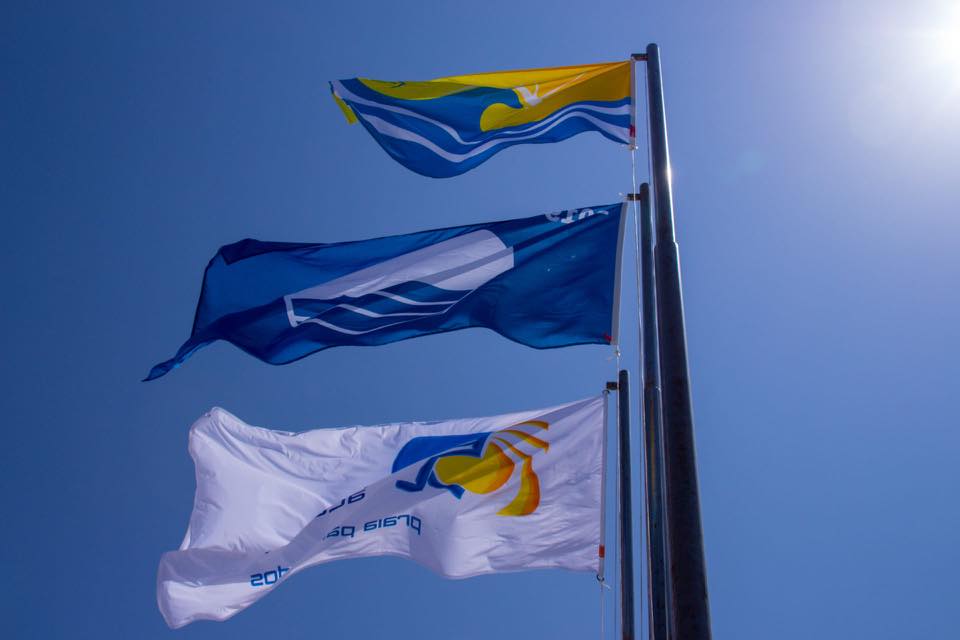 A tradicional Bandeira Azul, juntamente com a Bandeira “Praia Acessível” e “Praia Qualidade de Ouro” compõem o painel de bandeiras hasteadas à entrada da Praia de Cortegaça