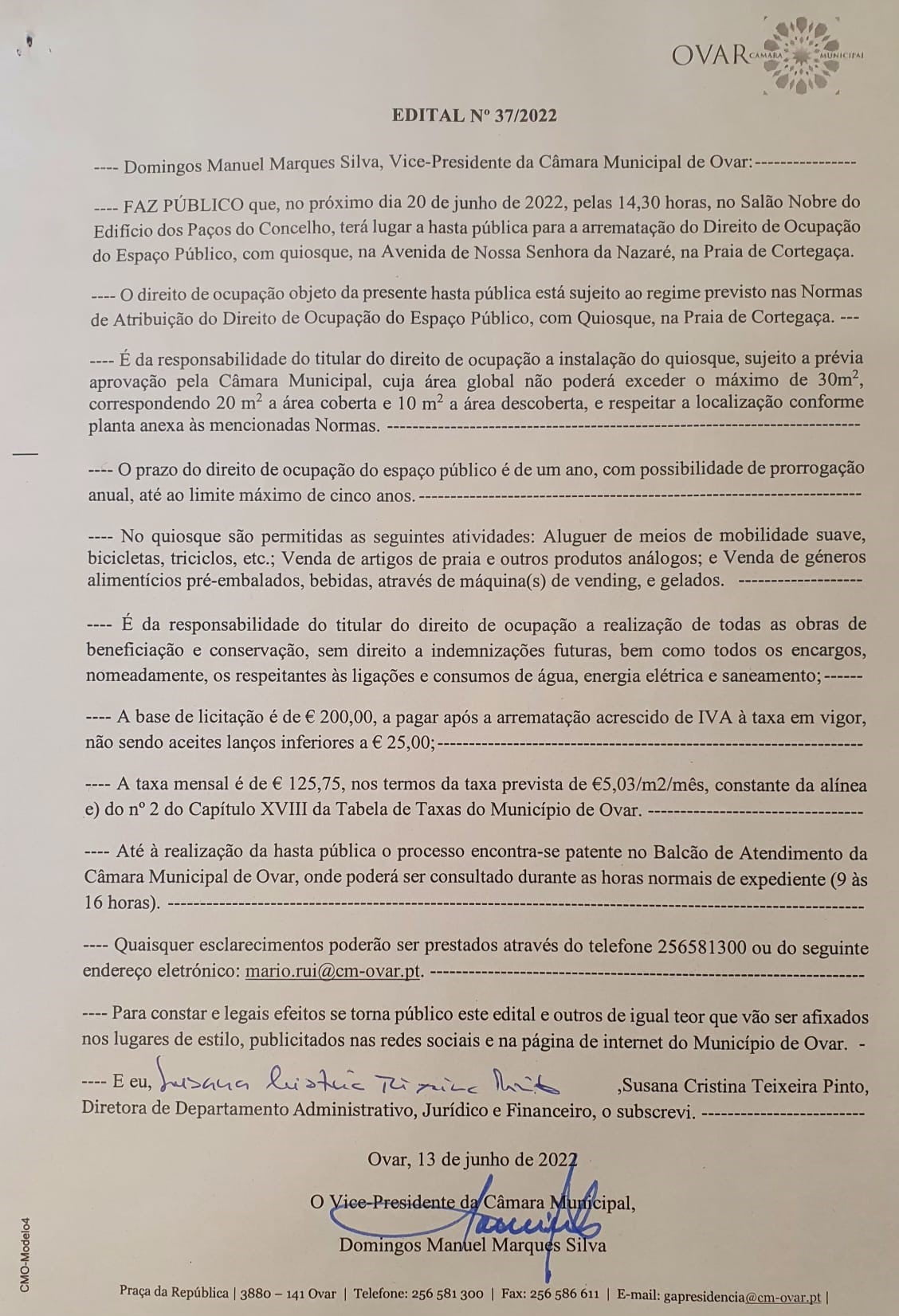 Edital Nº 21/2022 – CM Ovar