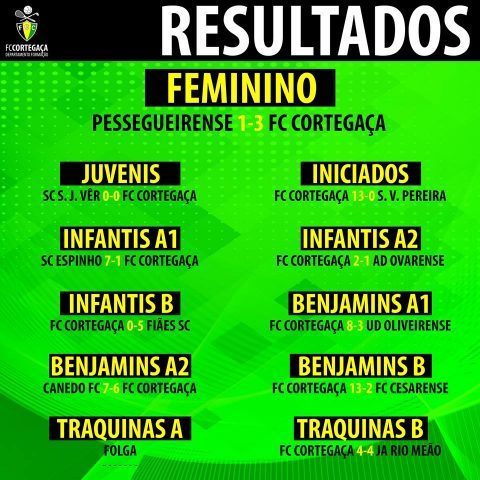 No fim de semana de 23 e 24 de fevereiro, os resultados positivos sorriram maioritariamente aos diferentes escalões do Futebol Clube de Cortegaça. Confira aqui os resultados.