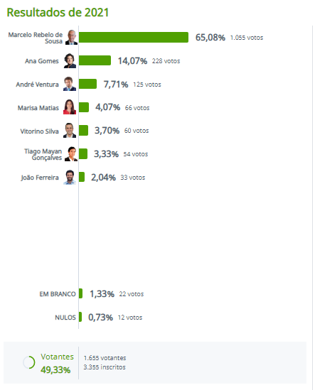 Para mais informações sobre os resultados eleitorais globais ou específicos, poderá consultar aqui.